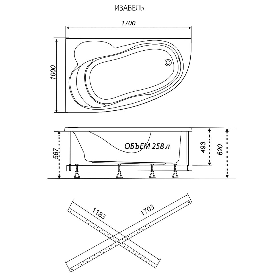 Ванна акриловая Изабель правая 170*100 см (ЧАША ВАННЫ)