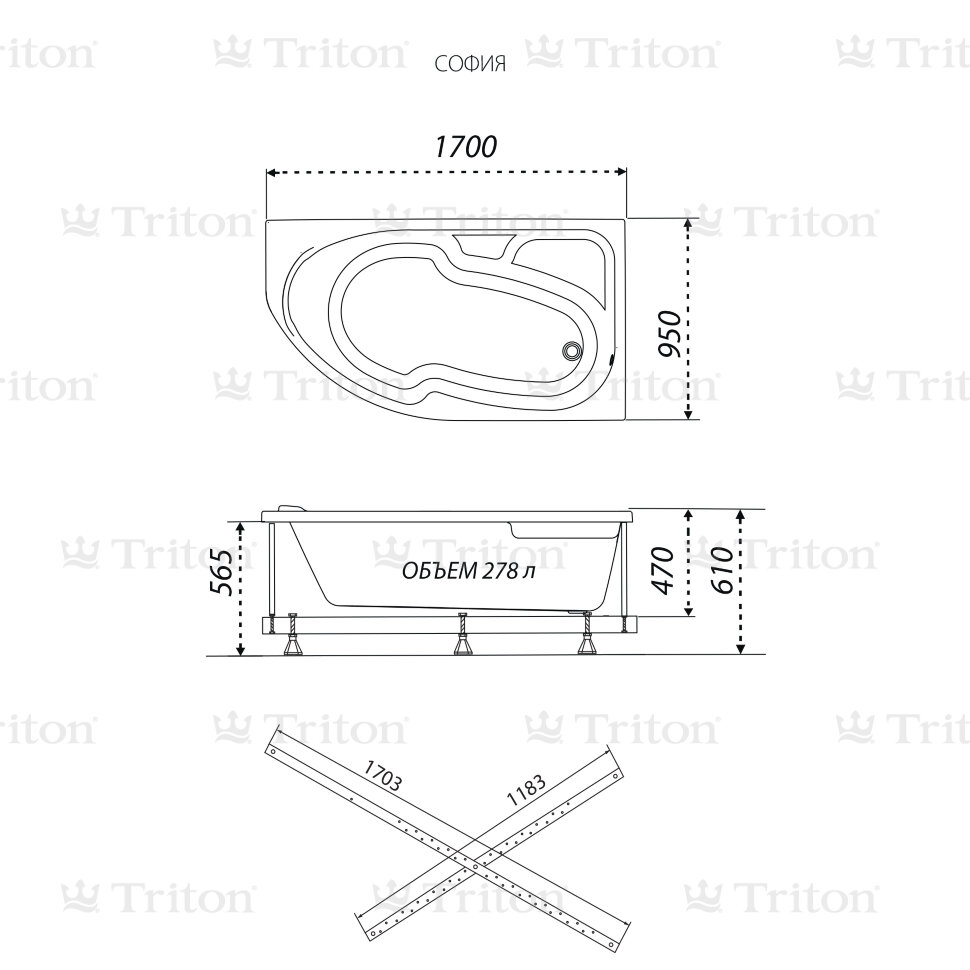ПодробнееВанна София правая 170*95 см (ЧАША ВАННЫ)