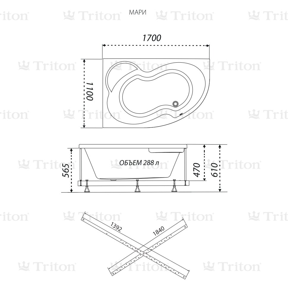 ПодробнееВанна акриловая Мари правая 170*110 см (ЧАША ВАННЫ)