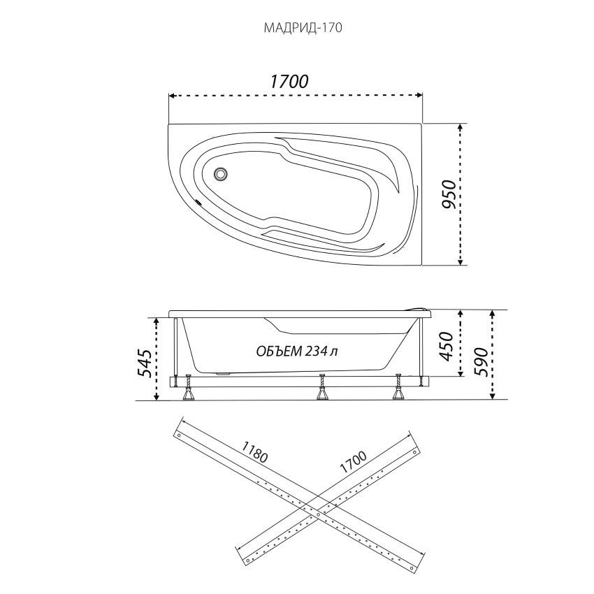 ПодробнееВанна акриловая Мадрид левая 170*95 см (ЧАША ВАННЫ)