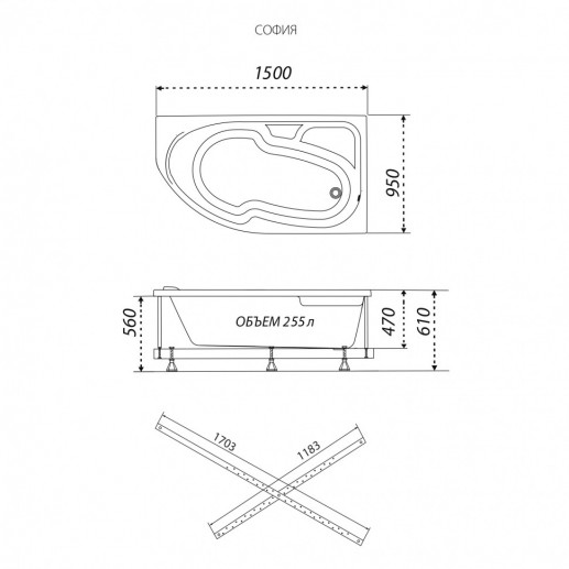 ПодробнееВанна София правая 170*95 см (ЧАША ВАННЫ)