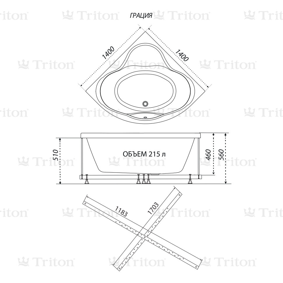 Ванна акриловая Грация (ЧАША) 140х140 см