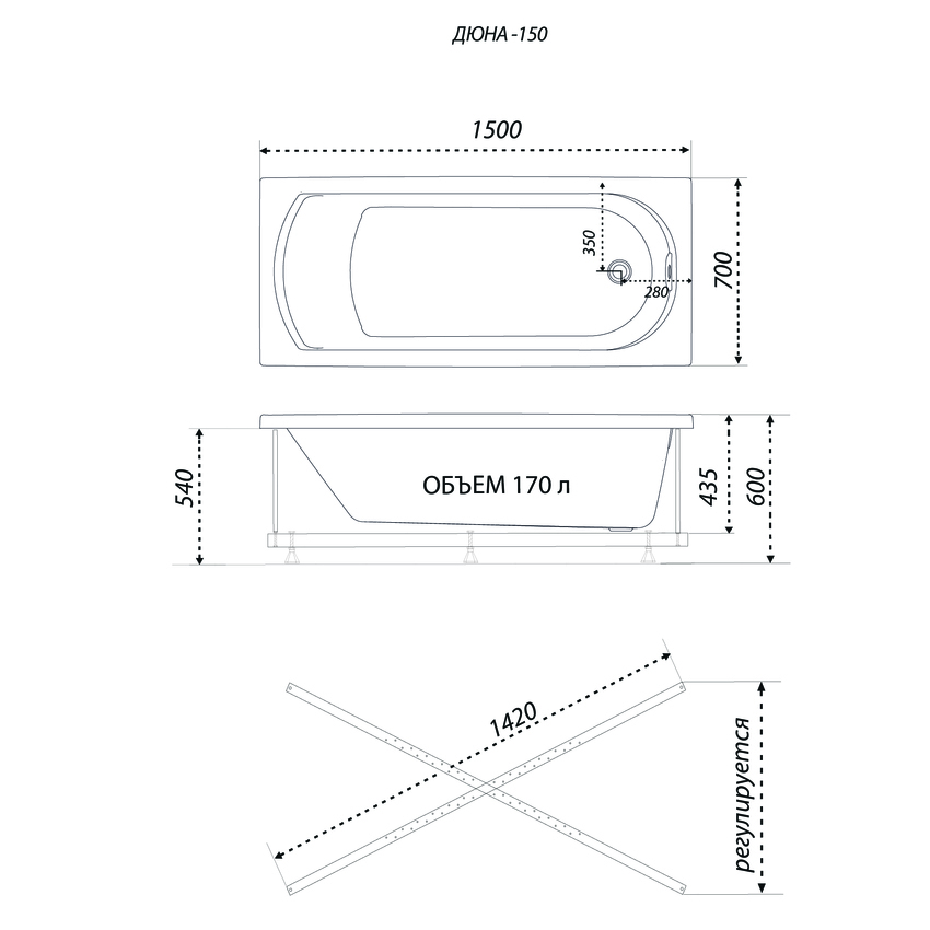 ПодробнееВанна акриловая 1ACReal Дюна-150х70 см (ЧАША)