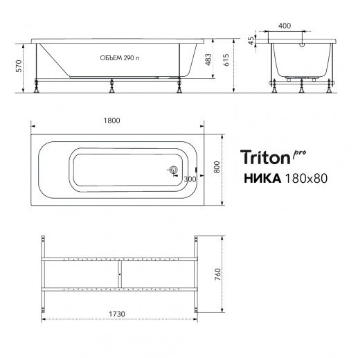 ПодробнееВанна из 100% литьевого акрила Triton-PRO "Nika" 180×80 (чаша ванны)