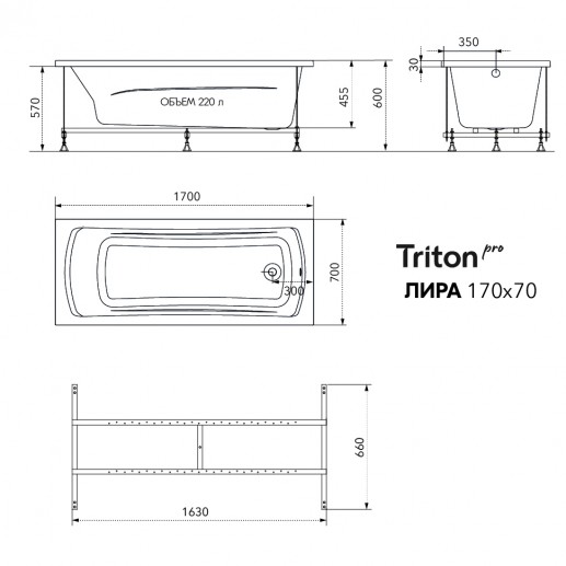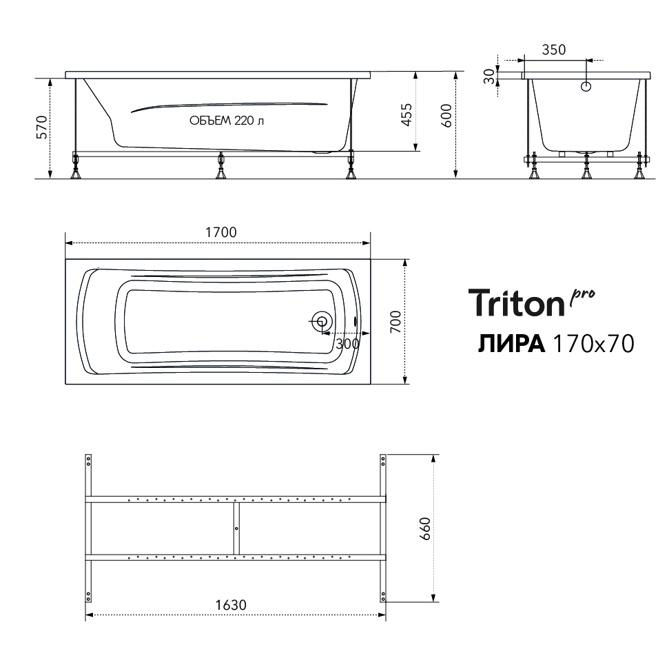 ПодробнееВанна из 100% литьевого акрила Triton-PRO "Лира" 170*70 см (чаша ванны)