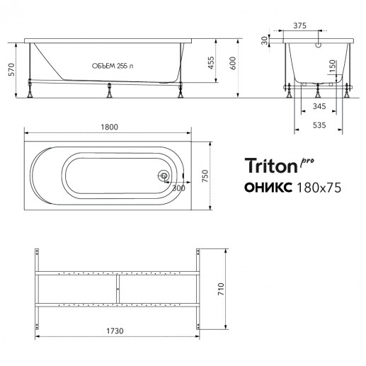 ПодробнееВанна из 100% литьевого акрила Triton-PRO "Оникс" 170*70 см (чаша ванны)