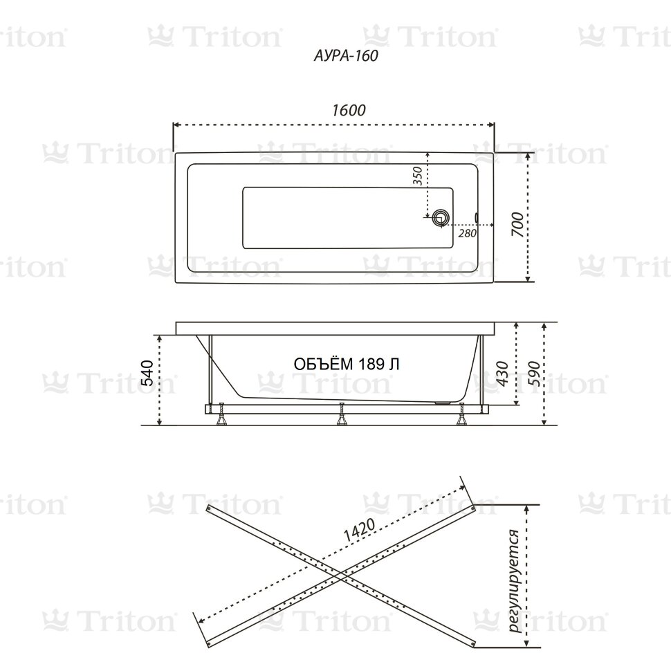 Для облегчения монтажа ванны в ограниченном пространстве ванной комнаты и в соответствии с ТУ, размеры изделия могут отличаться, по габаритной длине: -1%+0,2%, по габаритной ширине: -2%+0,2%