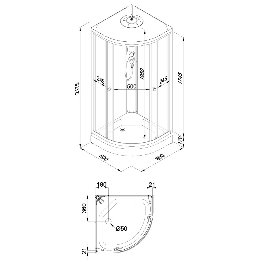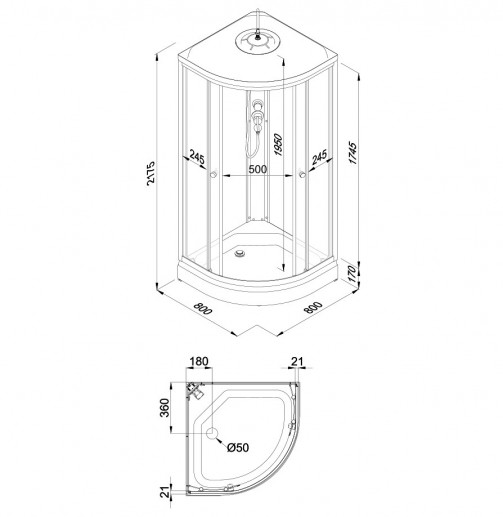 Высота поддона 170 мм