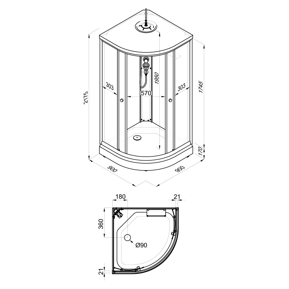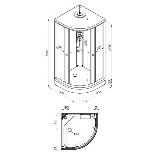 Душевая Кабина Грэй-Блэк 90*90 В