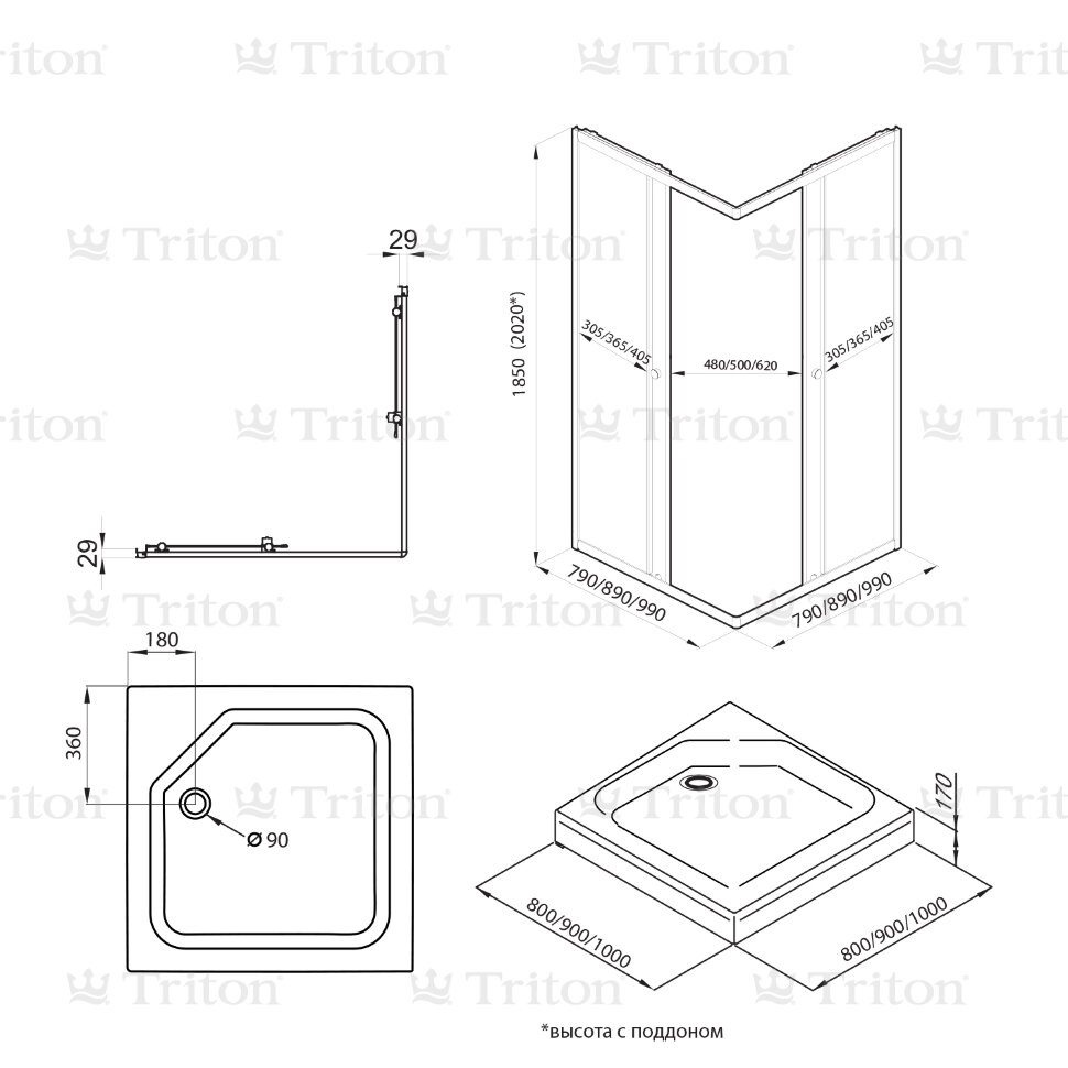 ПодробнееДушевое Ограждение Тау-Блэк 90*90 см (с поддоном)