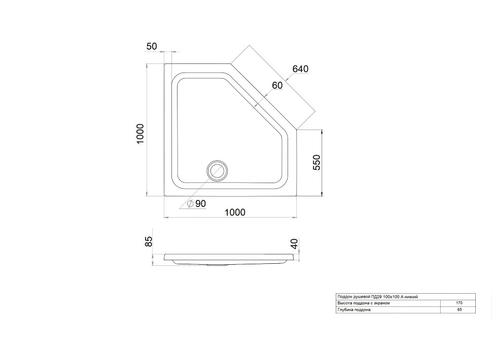 ПД17 Душевой поддон 120*80 см низкий правый (высота 17 см)