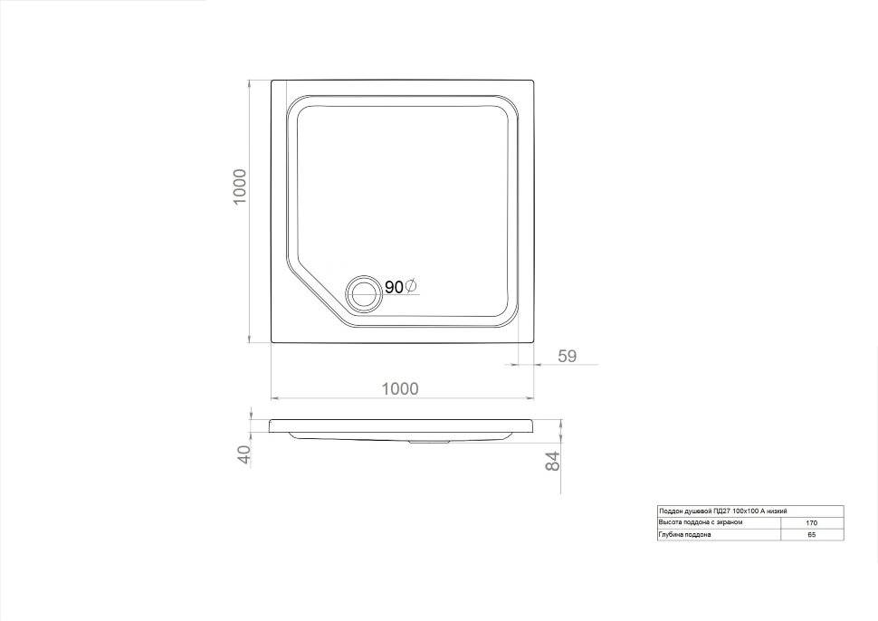 Поддон душевой 100х100 низкий (ПД27)