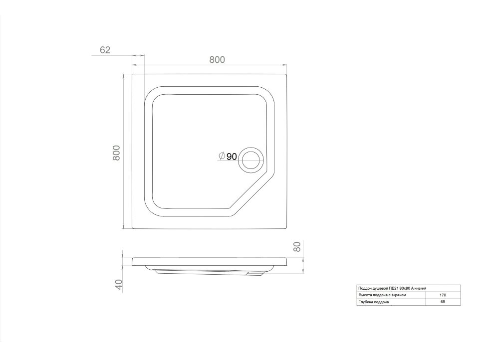 ПД17 Душевой поддон 120*80 см низкий правый (высота 17 см)