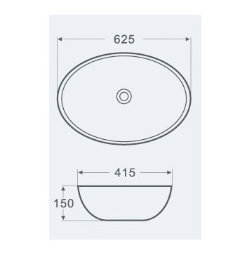 CS3077 Раковина накладная овальная 625х415х150мм.
