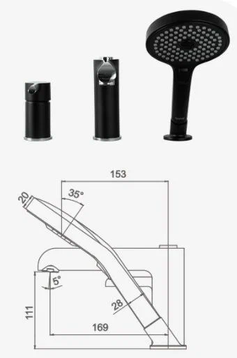Смеситель на борт ванны Gappo G1103-6 (черный/хром)